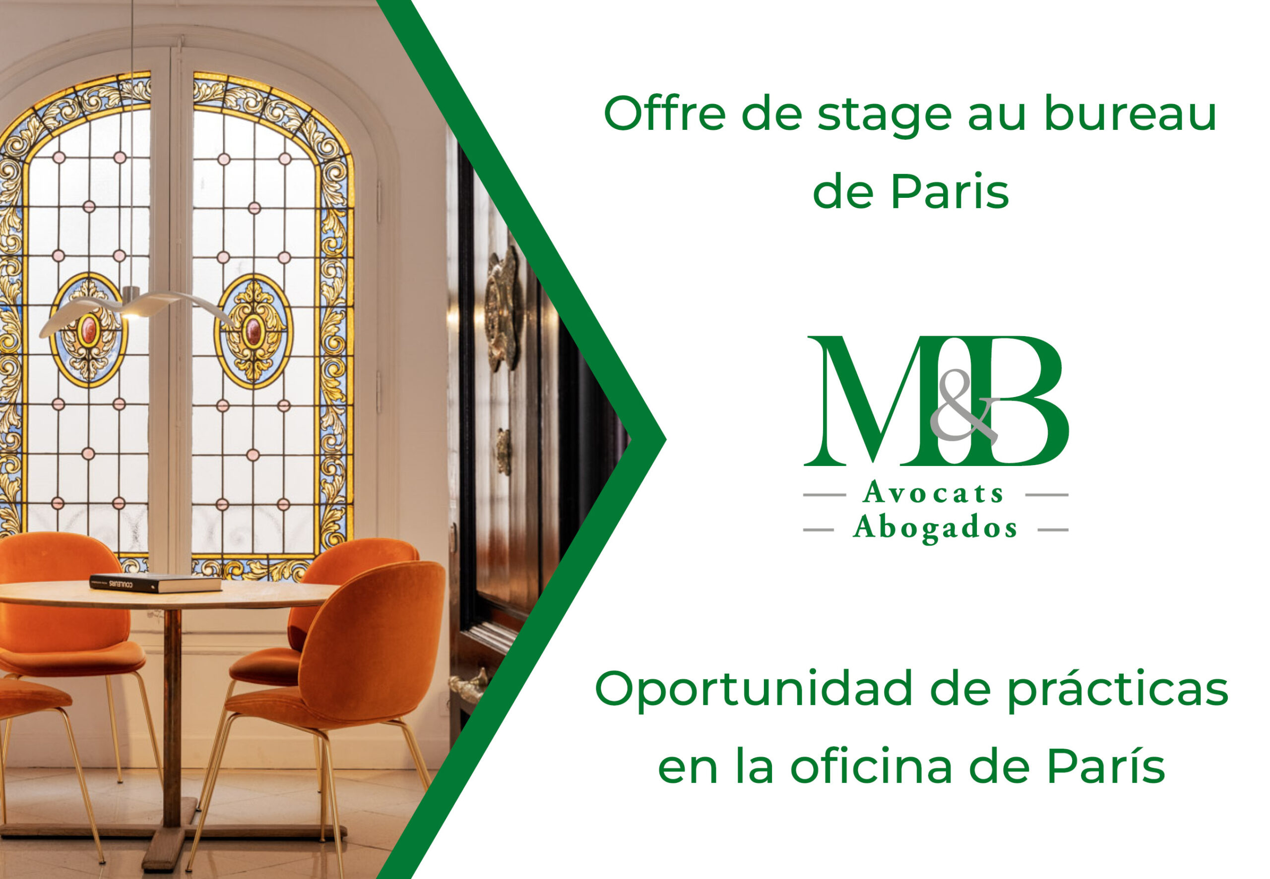 mbavocats2026-04-02T08:20:55+01:00Le cabinet M&B Avocats – M&B Abogados est à la recherche d’un.e stagiaire bilingue (français, espagnol) pour son bureau de Paris pour une période de 6 mois à partir de juillet 2026.